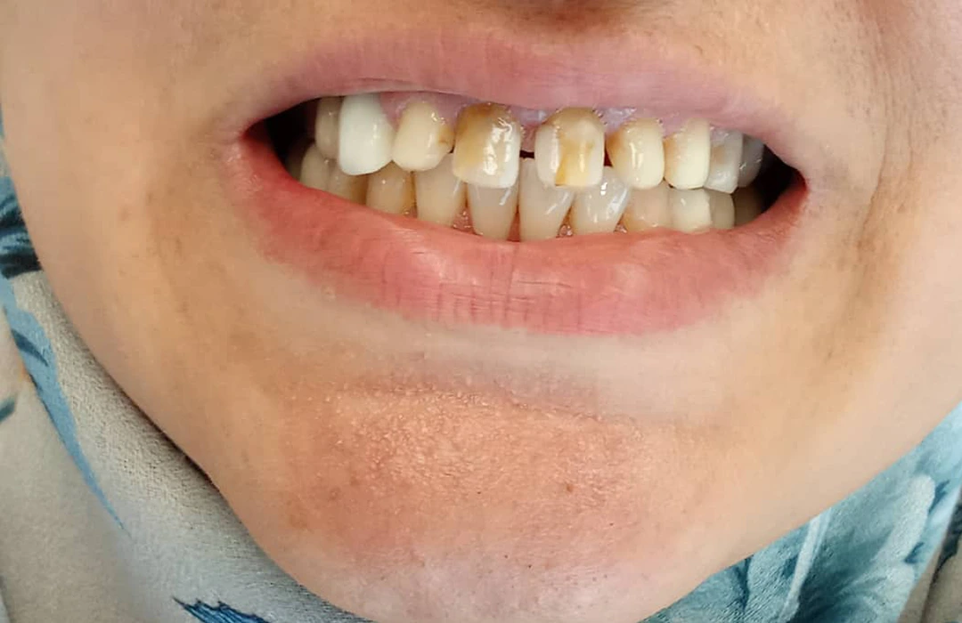 نمونه کار روکش دندان جلو فک بالا توسط دکتر بهزاد امیری در بابل
